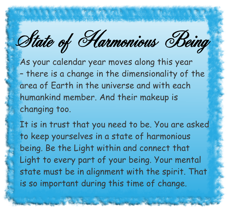 “State of Harmonious Being” – channelled spiritual message from The Circle of The Light of The Love Energy