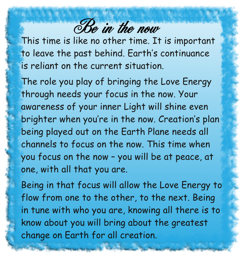 “Be in the now” – channelled spiritual message from The Circle of The Light of The Love Energy