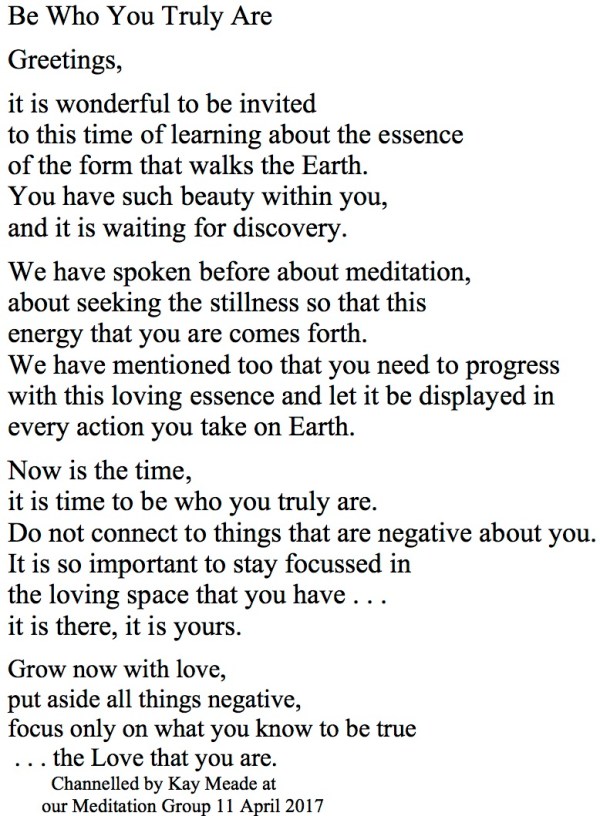 A powerful message channelled by Kay Meade from The Circle of The Light of The Love Energy. Especially important now. Lets all try to do what they ask!