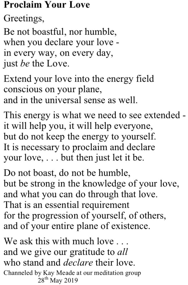 “Proclaim Your Love” – channelled spiritual message from The Circle of The Light of The Love Energy