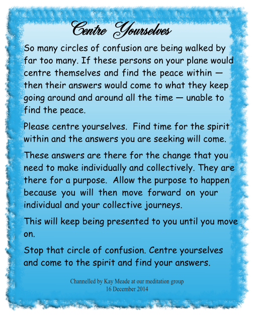 “Centre Yourselves” – channelled spiritual message from The Circle of The Light of The Love Energy