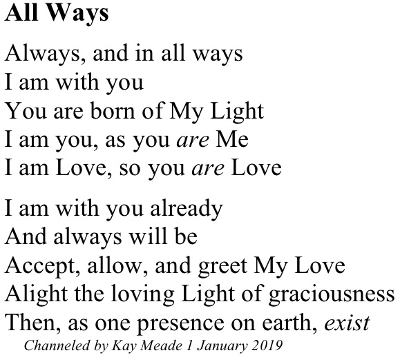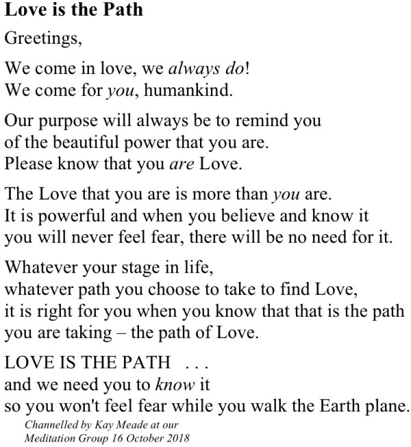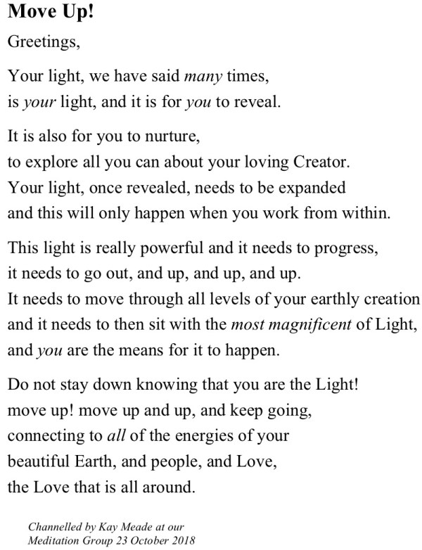Please click below to hear the message channelled by Kay at our weekly meditation group.