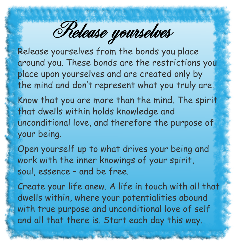 Kay channelled this message from The Circle of The Light of The Love Energy during a session of our meditation group in April 2011.