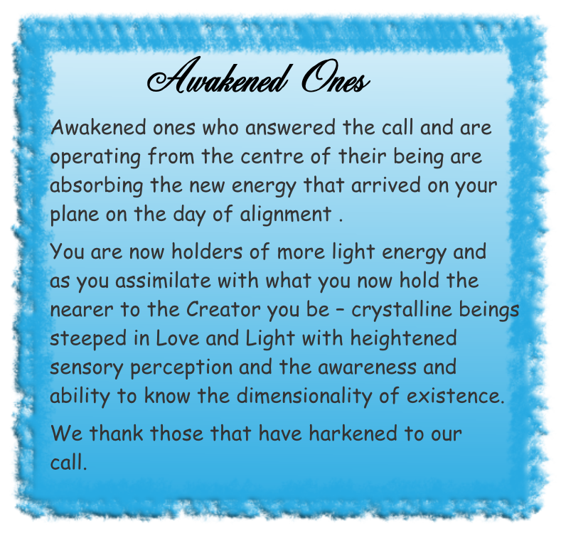 The implementation of the co-operation of the consciousness of humankind is allowing the infill of new energy into the beings that are awakened, and their structure will change for the positive.