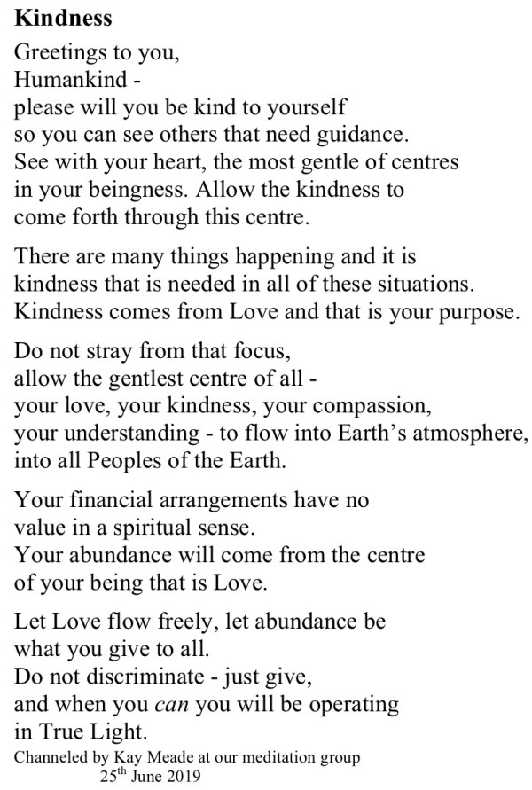 This is one of the earliest messages that Kay channelled from The Circle of The Light of The Love Energy when they were first asking us to spread the messages channelled from them through Kay……………..